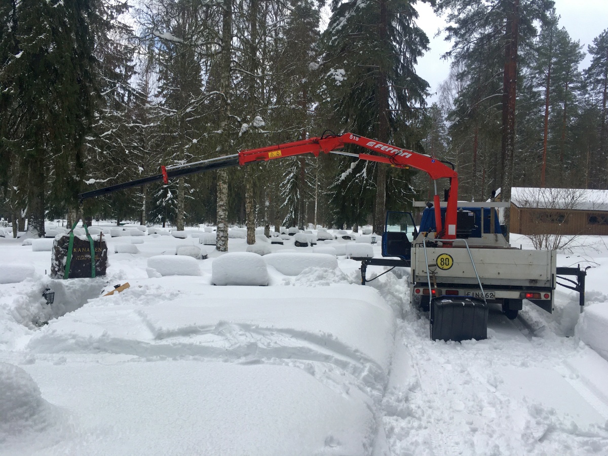 Kaikki muut hautakiviin liittyvät työt. Käytössä on pieni nosturiauto.